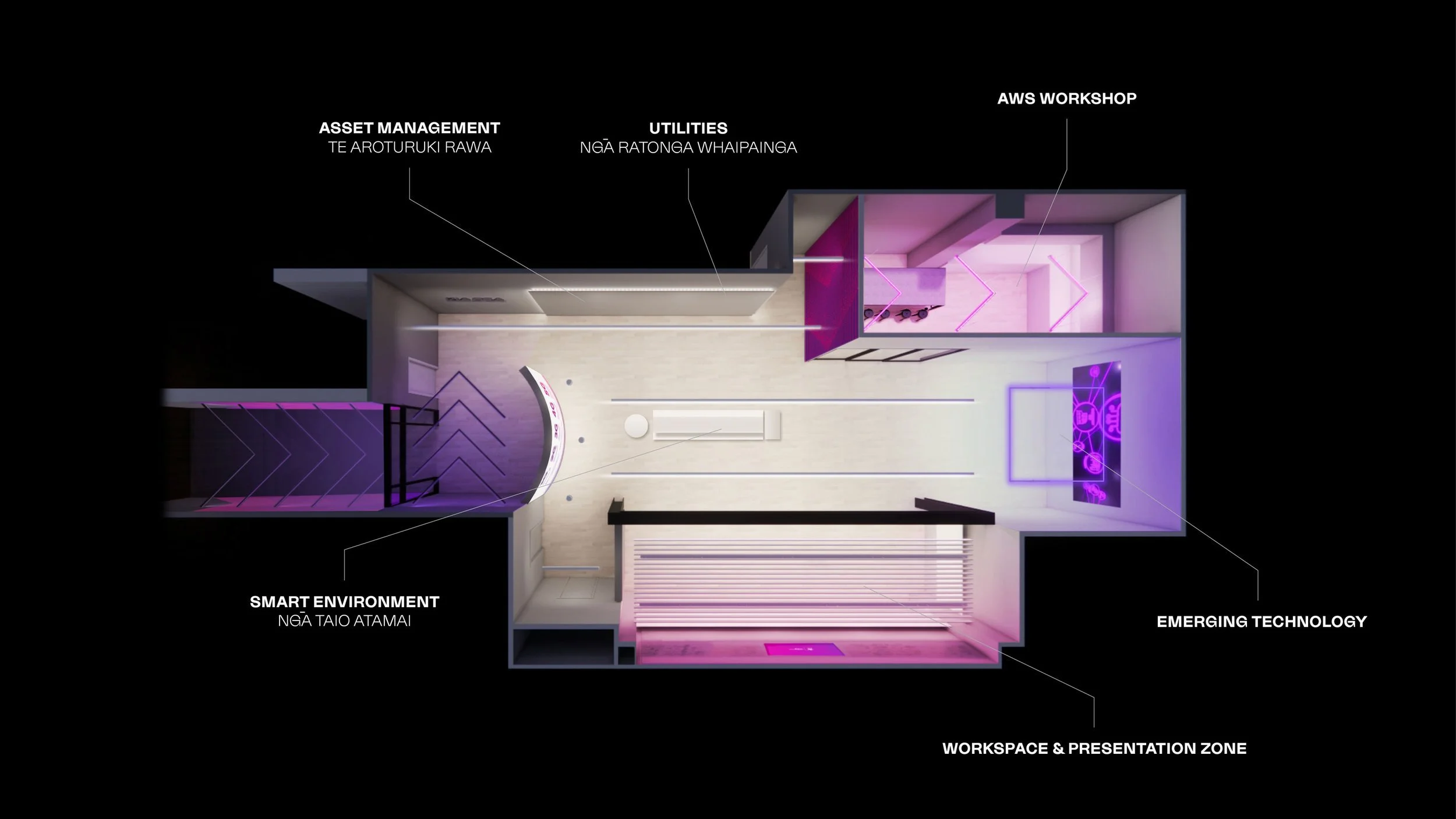 Through experience strategy, spatial design, and CAD modelling, the studio was curated as an interactive environment that positioned Spark as the preferred tech partner for Kiwi businesses – making lives better, strengthening organisations, and creating a more sustainable, productive future.